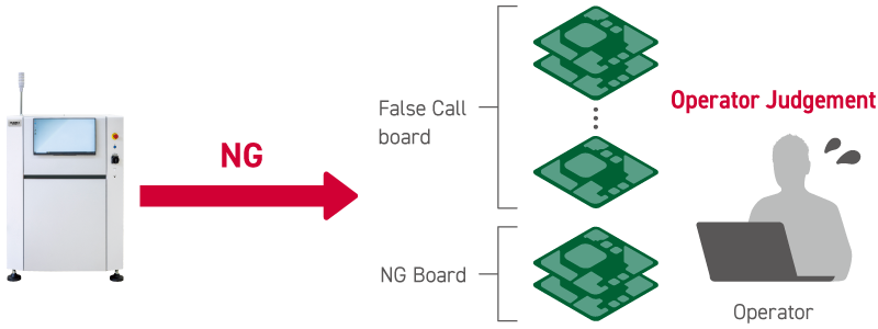 In a mass production environment, this feature visualizes operator assessment results (false calls, NG) and adjusts inspection parameters accordingly.