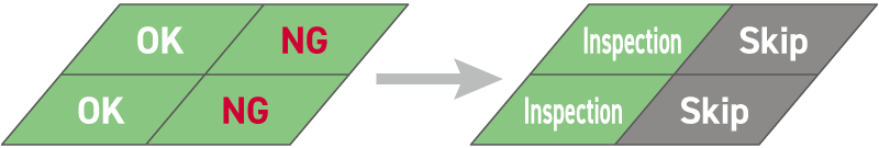 In the conventional judgment, parts that were judged to be NG by the inspection machine were re-judged by the operator on the judgment monitor. For AI assist, the AI performs a re-judgment before the operator judgment for inspection NG parts. AI significantly reduces manual confirmation workload, requiring operators to visually inspect only AI-determined NG parts.