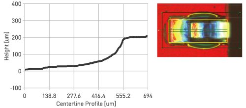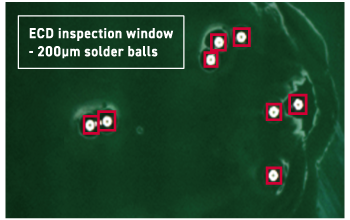 High I/O count device inspections benefit from improved coplanarity, with solder range analysis for height, volume, area that helps prevent post-reflow wetting.