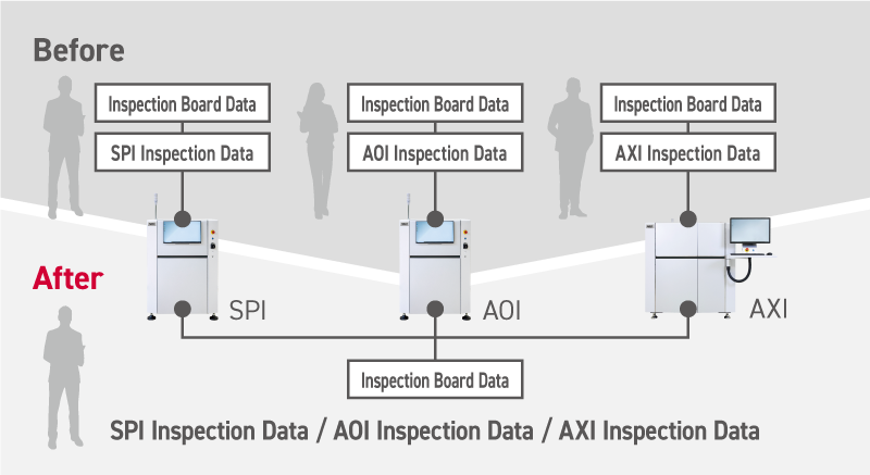 Standardized inspection program data for SPI, pre-AOI, and post-AOI, eliminates duplicate tasks and reduces line setup by approximately 30%.