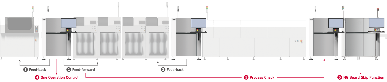 By linking inspection machines with solder printing and pick-and-palce machines, the quality control for the entire SMT line is improved.