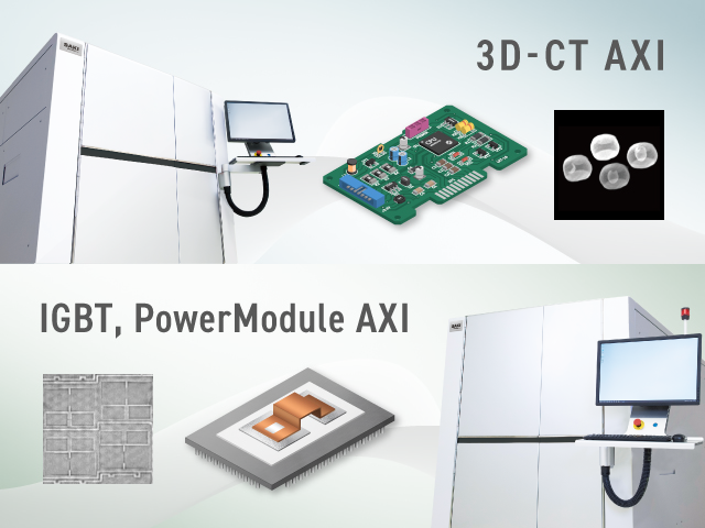 X線検査で求められるスピードの一つの指標として“インライン化への対応”があります。 サキのX線検査装置は高精度検査とスピードの両立を実現しており、SMT工程用の3D-CT AXIはインライン運用が可能です。また、高速化の技術はパワーモジュール検査用X線検査装置にも適応されています。